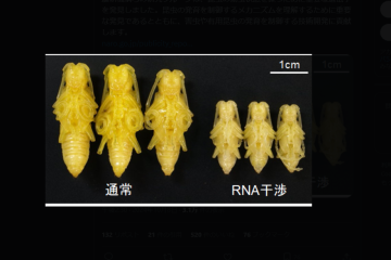 농연기구(NARO) 곤충이용기술연구영역의 상급연구원 카유카와 타쿠미 (粥川 琢巳) 씨 (본 연구실 출신)와 본 연구실의 마츠오 타카시 준교수의 공동연구의 성과에 대해 언론발표를 했습니다. 본 연구실에서는 곤충이 유충상태를 유지하는데 있어 중요한 유전자를 발견하였으며, 이는 곤충의 발육을 제어하는 메커니즘을 더보기…